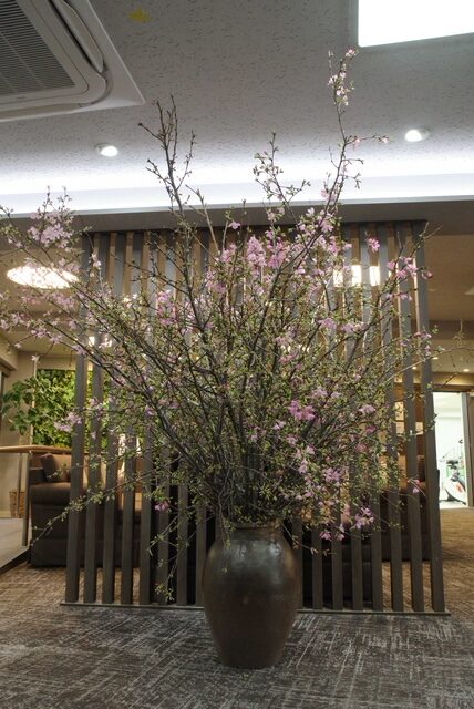 当施設では一足早く、ロビーや食堂など館内各所に雅桜(みやびざくら)を期間限定で展示しています。