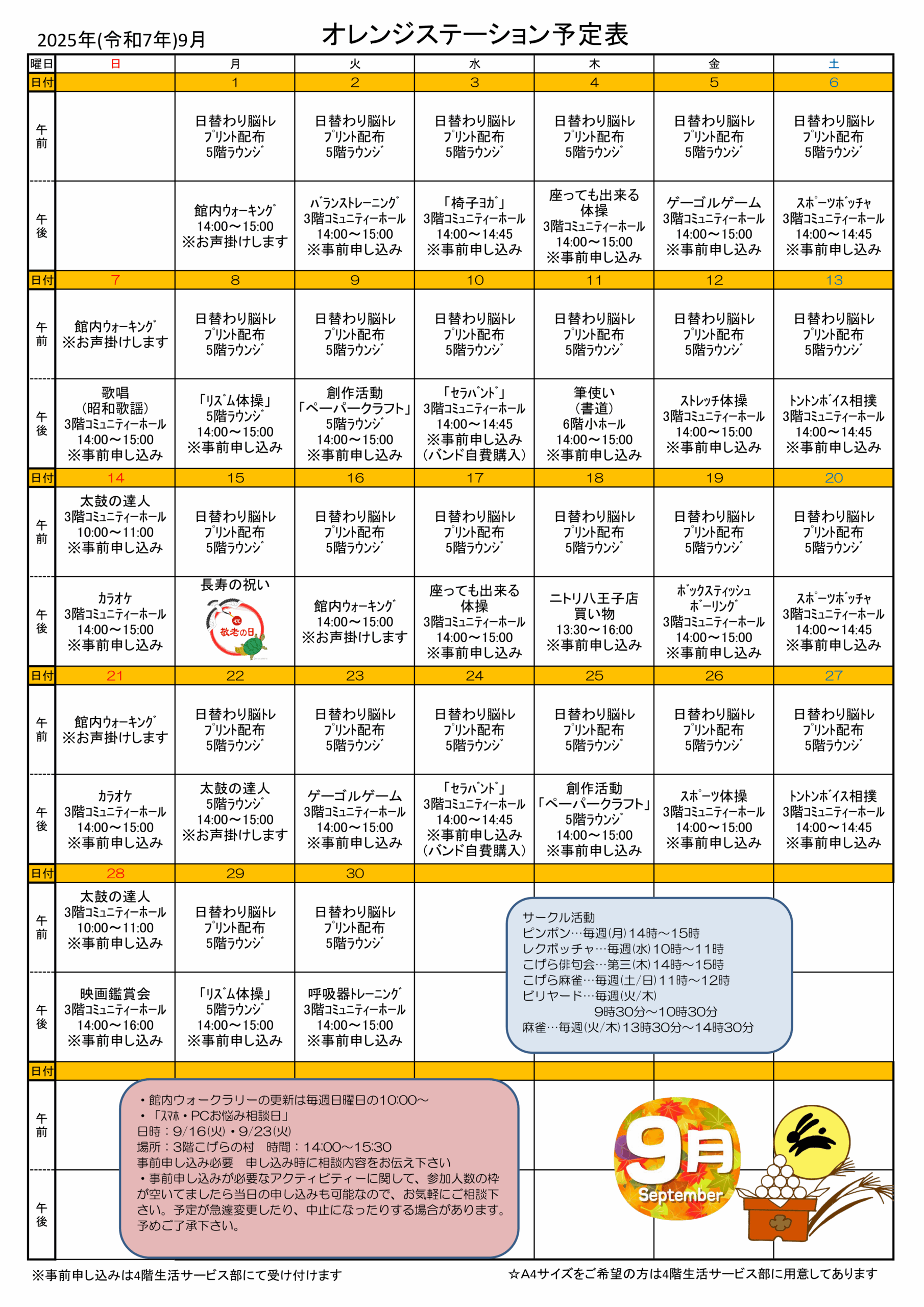 9月の予定表を公開しました!